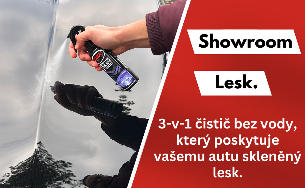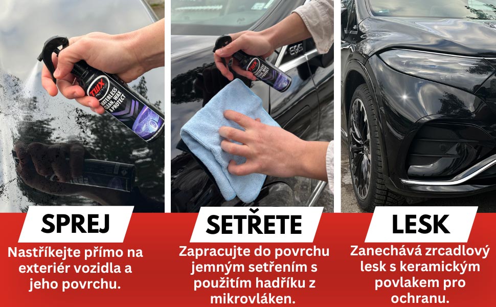 1. Nastříkejte na čistou a složenou utěrku z mikrovlákna a na vnější povrch na Vašem autě, který chcete vyčistit.